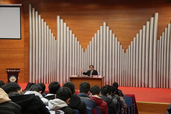 周建松教授带领大家回忆了矿大百年的历史变迁与走过的风风雨雨,分享了自己求学、工作经历和人生感悟。“书山有路勤为径,学海无涯苦作舟”,周建松教授谆谆叮嘱青年学生,要珍惜来之不易的学习环境,勉励大家志存高远,刻苦学习,攻坚克难,勇担历史使命,实现人生价值,为实现伟大的中国梦作出自己应有贡献。